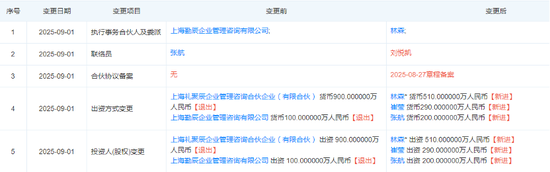 根据工商资料显示,2025年9月1日,勤辰基金的投资人及出资方式出现重大调整。